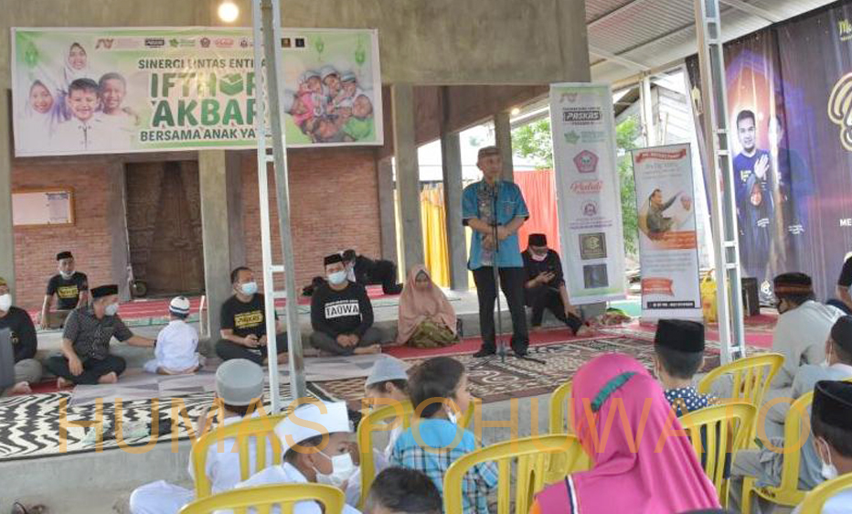 HUMAS.POHUWATO-Ifthor akbar bersama anak yatim, sinergi lintas entitas se-kabupaten pohuwato di pelataran masjid moderen munjalan mubarokan pohuwato, markas paskas pohuwato desa marisa selatan dihadiri langsung Bupati Pohuwato, Saipul A. Mbuinga dan dihadiri oleh Brans Manager EOA Gold Pohuwato, drg. Rama Tri Yustoro sekaligus melaporkan gambaran singkat profil seluruh entitas, Ketua Paskas Pohuwato, Usman Hadis Bay yang juga selaku Ketua Korpri Pohuwato.