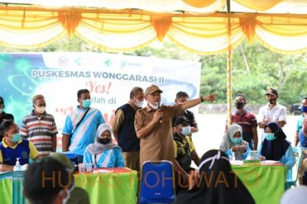 Demikian disampaikan Bupati Pohuwato, Saipul A. Mbuinga ketika menghadiri vaksinasi massal di lapangan desa tuweya. Selasa, (28/9/2021).