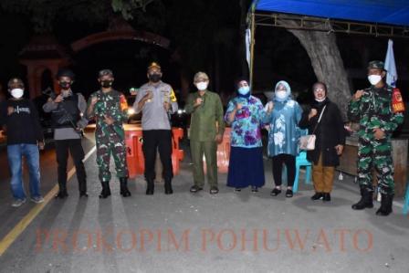 PROKOPIM.POHUWATO-Memastikan keamanan dan ketertiban masyarakat (Kamtibmas) di wilayah barat pohuwato, Bupati Saipul A. Mbuinga bersama Wakil Bupati, Suharsi Igirisa, Kapolres Pohuwato, Dandim 1313 Pohuwato, dan pejabat pemda pohuwato meninjau pos perbatasan pohuwato-parimo di Desa Molosipat Kecamatan Popayato Barat, Jum’at, (31/12/2021) malam.