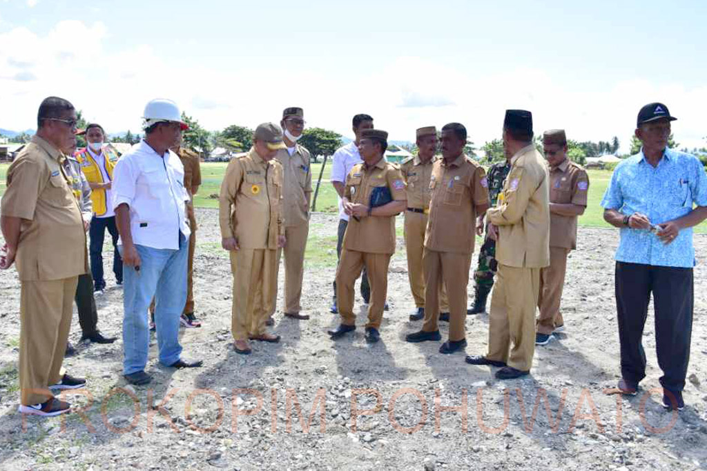 Proses pekerjaan lapangan sampai pada panggung utama ditinjau langsung Bupati Pohuwato, Saipul A. Mbuinga didampingi anggota DPRD dan sejumlah pimpinan OPD, Selasa, (21/6/2022).