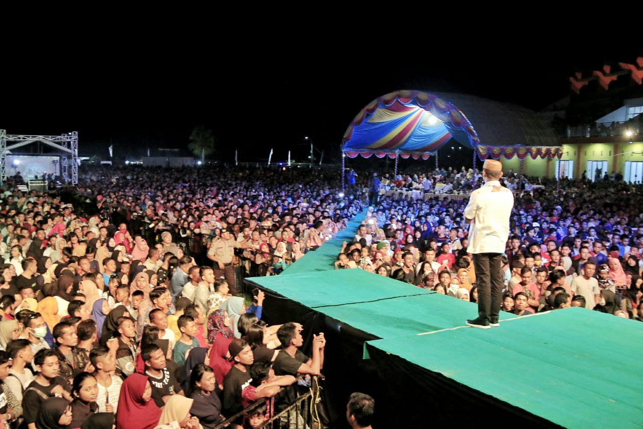 Terakhir dari sambutannya, harapan Bupati Syarif kepada generasi muda kaum milenial untuk menjauhi narkoba, miras dan stop menyebarkan berita hoax. InsyaAllah tahun depan kita akan mendatangkan artis besar lagi asal kita mampu menjaga kekompakan dan stabilitas keamanan ungkap Syarif. (SH)