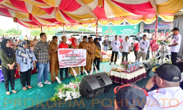 Anggota dan pengurus yang tergabung dalam Gerakan Bersama Aksi Kemanusiaan Paguat Mandiri Donor Darah (Gebrakan Paman Dora) Kecamatan Paguat dilantik dan dikukuhkan Bupati Pohuwato, Saipul A. Mbuinga pada kegiatan Gebyar SMS di halaman Puskesmas Paguat, Selasa, (4/7/2023).