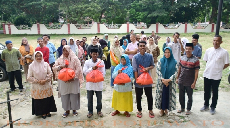 Kepala Disparpora Pohuwato, Dra. Rusmiati Pakaya, M.Pd, memimpin langsung pembagian sembako, didampingi Sekretaris Nirmala Nento, Kabid Pariwisata Herman Abdullah, dan Kabid Olahraga, Hasan Poiyo.