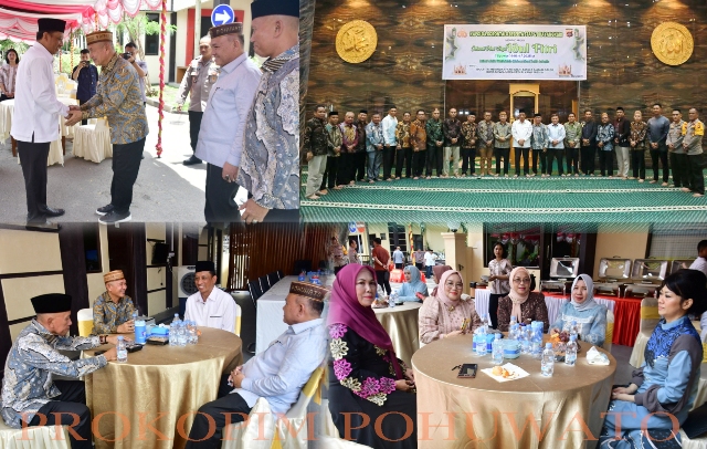 PROKOPIM.POHUWATO-Bupati Pohuwato, Saipul A. Mbuinga, bersama Wakil Bupati, Iwan S. Adam, didampingi Ketua dan Wakil Ketua TPP. PKK Pohuwato, Selvi Mbuinga Monoarfa, dan Risnawati All, Ketua DPRD, Beni Nento, serta jajaran Pemda Pohuwato melakukan silaturahim dengan Kapolda Gorontalo pada Selasa, (01/04/2025).