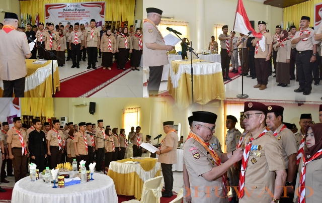 PROKOPIM.POHUWATO-Majelis Pembimbing Cabang Kwartir Cabang Gerakan Pramuka Pohuwato masa bakti 2024-2029 yang diketuai Bupati Pohuwato, Saipul A. Mbuinga, resmi dilantik oleh Ketua Kwartir Daerah Gorontalo, Sopyan Puhi, di gedung panua Pohuwato, Selasa, (29/04/2025).