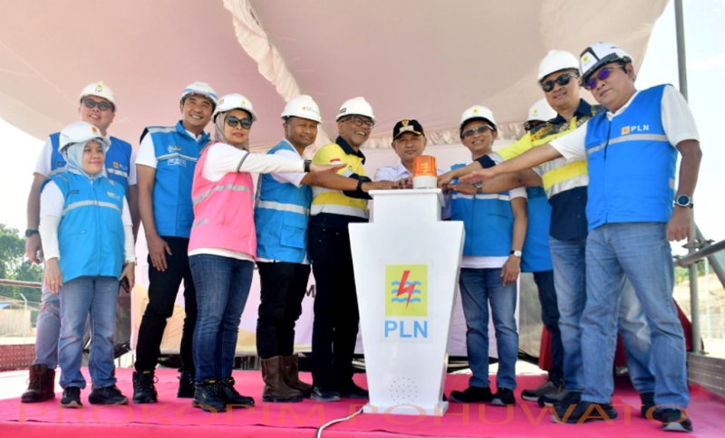 PROKOPIM.POHUWATO-Seremoni pengoperasian listrik PT Gorontalo Sejahtera Mining (GSM) dengan daya 30.000.000 VA (30 MVA) dari PT PLN Persero UID Suluttenggo UP3 Gorontalo berlangsung di Gardu Induk Marisa, Desa Maleo, Kecamatan Paguat, Rabu (01/10/2025).