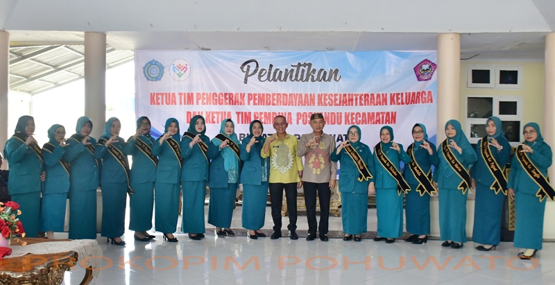 PROKOPIM.POHUWATO–Seiring dengan pergantian tujuh camat di Kabupaten Pohuwato, jabatan Ketua Tim Penggerak Pemberdayaan dan Kesejahteraan Keluarga (TP.PKK) Kecamatan turut mengalami pergantian. Menyikapi hal tersebut, Ketua TP.PKK Kabupaten Pohuwato, Selfi Mbuinga Monoarfa, melantik tujuh Ketua TP.PKK Kecamatan, Kamis (30/10/2025), bertempat di rumah jabatan Bupati Pohuwato.