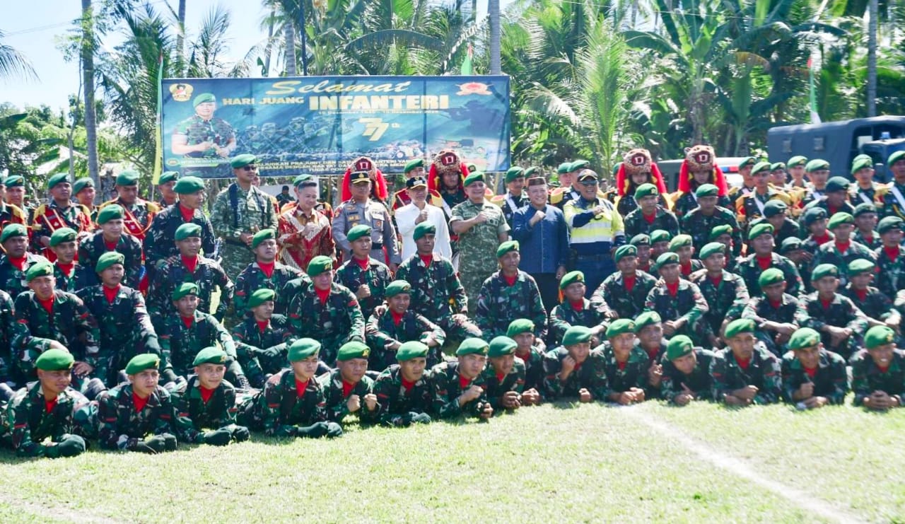 Usai mengikuti upacara, Bupati Pohuwato Saipul A. Mbuinga menyampaikan ucapan selamat kepada seluruh prajurit Korps Infanteri TNI Angkatan Darat.