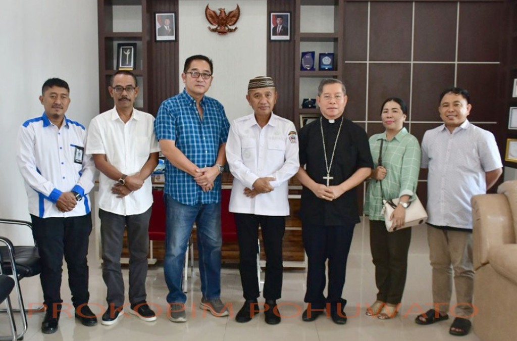 PROKOPIM.POHUWATO – Bertempat di ruang kerja, Bupati Pohuwato, Saipul A. Mbuinga, menerima kunjungan Bapa Uskup Manado, Mgr.Benedictus Estephanus Rolly Untu, Msc selaku pimpinan umat Katolik 3 Propinsi (Sulut, Gorontalo & Sulteng), yang didampingi Pemuka Katolik Kecamatan Marisa, ko Jolly Motto, SH bersama sejumlah umat Katolik lainnya, Rabu (21/01/2026).