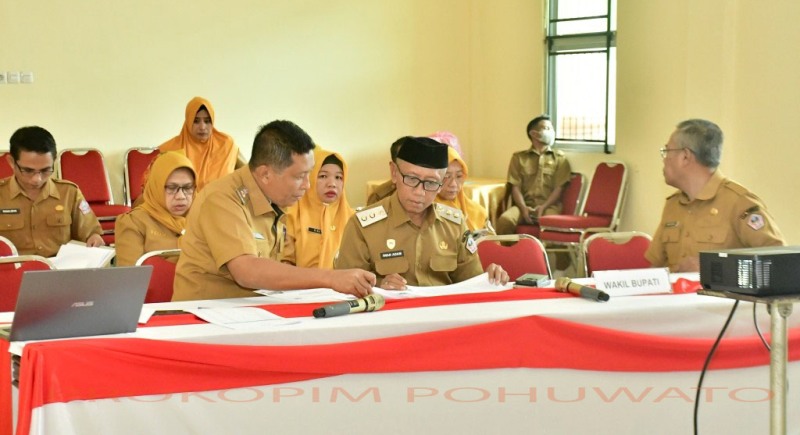 Kegiatan tersebut diikuti secara virtual dari Ruang Rapat Gunung Pani, Kantor Bupati Pohuwato. Turut mendampingi Asisten Perekonomian dan Pembangunan, Mahyudin Ahmad, Kepala Bapppeda, Rustam Melleng, Kepala Dinas Pangan, Muzna Giasi, Kepala Bagian Perekonomian dan SDA, Dely Pakaya, serta sejumlah perwakilan organisasi perangkat daerah terkait.
