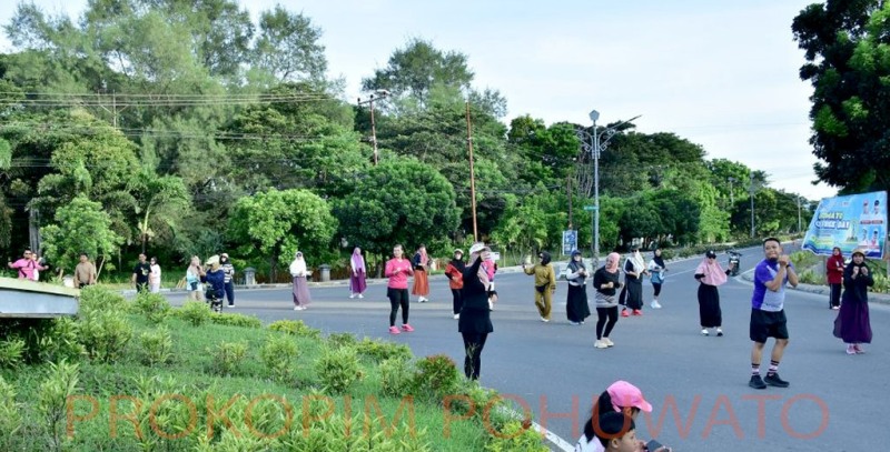 Agenda mingguan yang rutin dilaksanakan setiap hari Minggu ini kembali berjalan sebagaimana biasa. Kegiatan diawali dengan jalan sehat, kemudian dilanjutkan dengan senam bersama setelah semua berkumpul di kawasan Bundaran Burung Maleo.